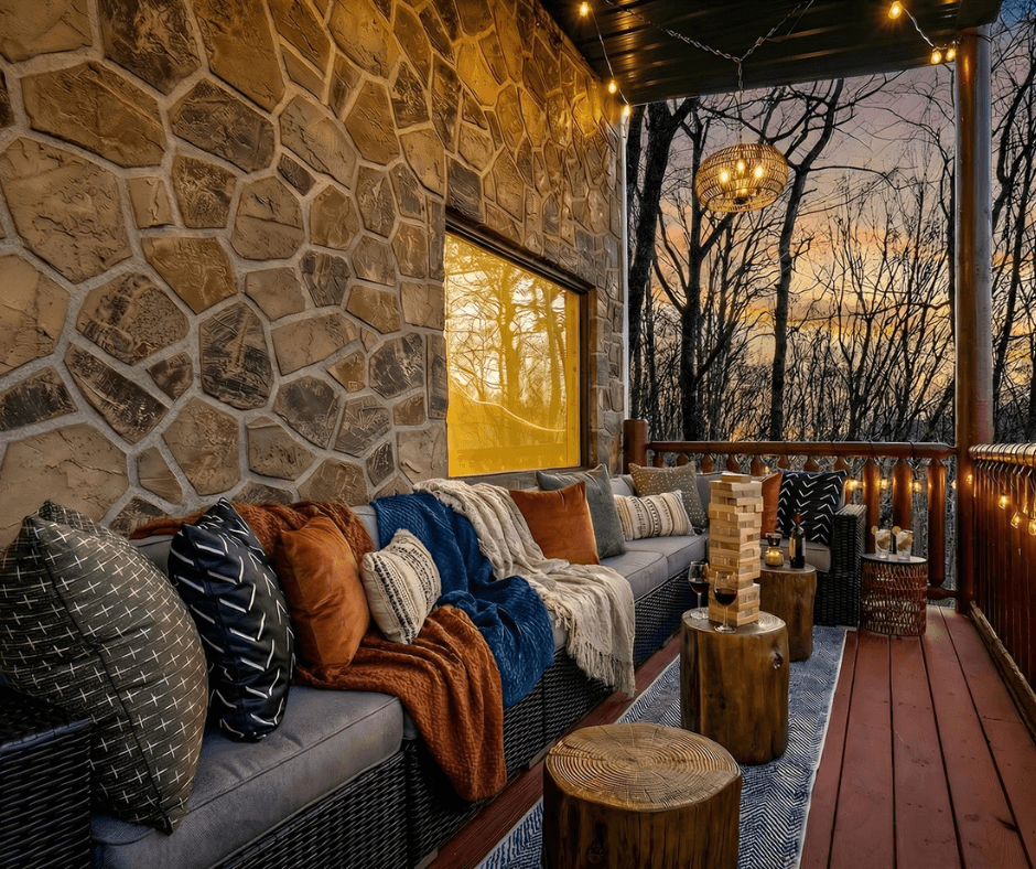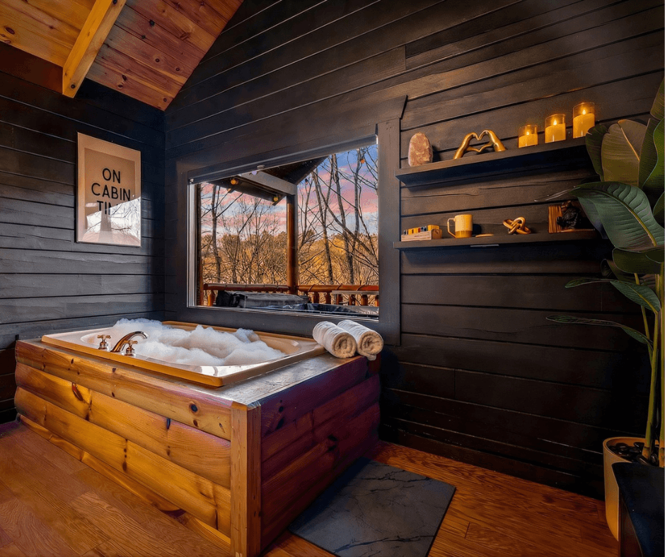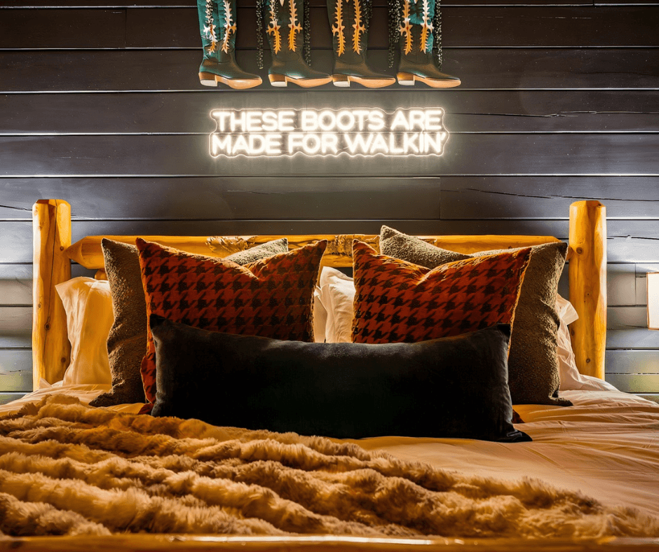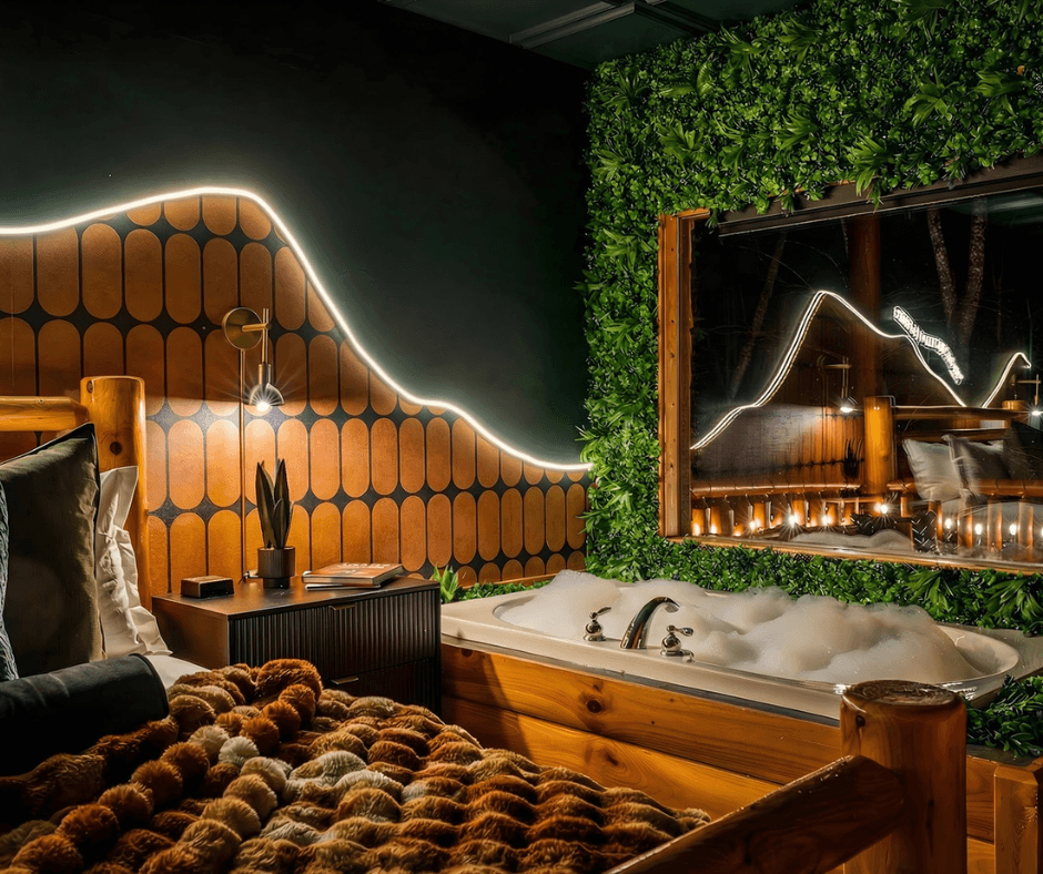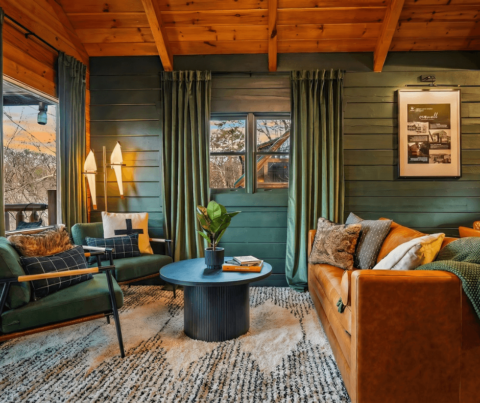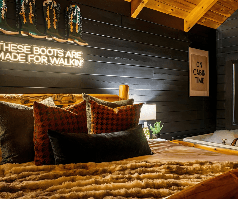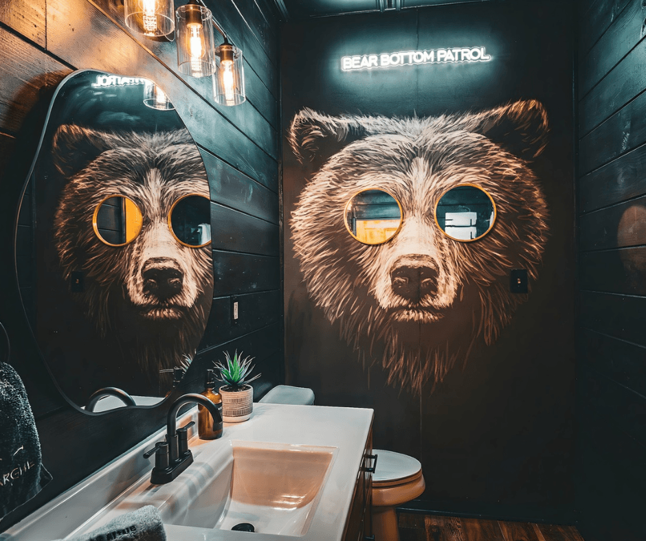 A Bear Affair was ready for a much-needed facelift - and the market presented the perfect opportunity to create something bold, moody, and memorable in a sea of typical cabin design. Through market and competitor analysis, we positioned the property as a cozy yet elevated retreat with rich color, layered textures, and statement amenities designed to photograph beautifully and sell the experience.